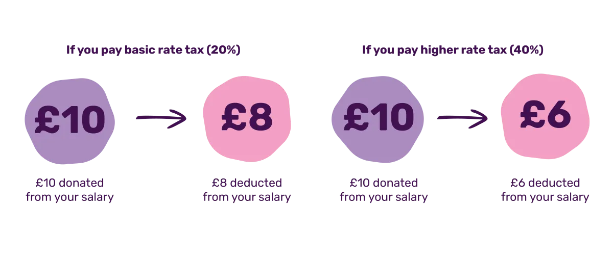 Your donation is taken directly from your salary before tax, meaning it costs you less to donate.